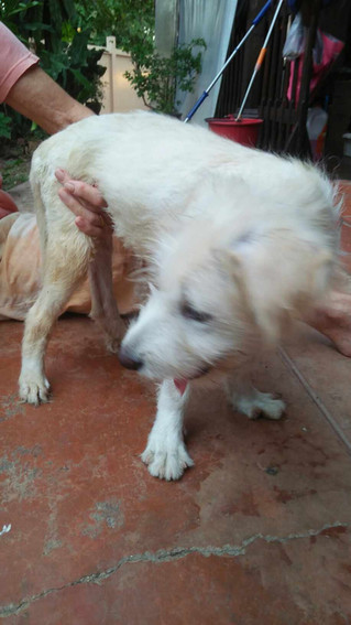 When Bobo was a 4-month-old puppy, he was bitten by an aggressive dog leaving him paralysed. We immediately took Bobo to our vet, who confirmed Bobo's spine was broken and the spinal cord was severed. Bobo's owners were no longer able to care for him, so we brought Bobo into our healing centre.